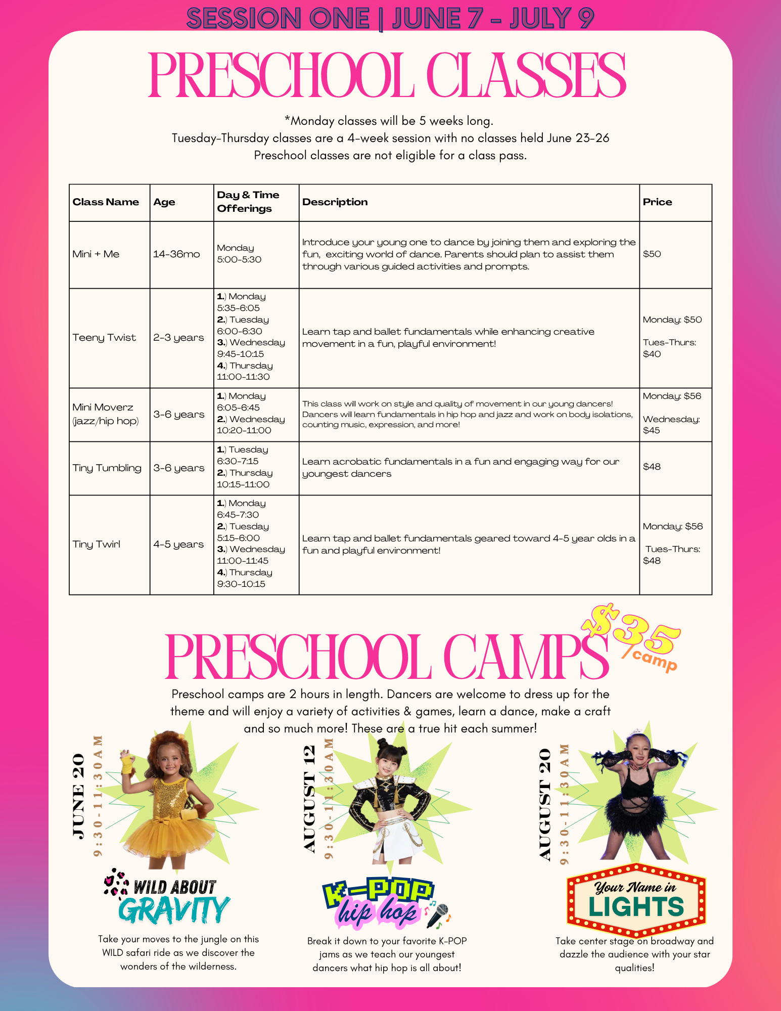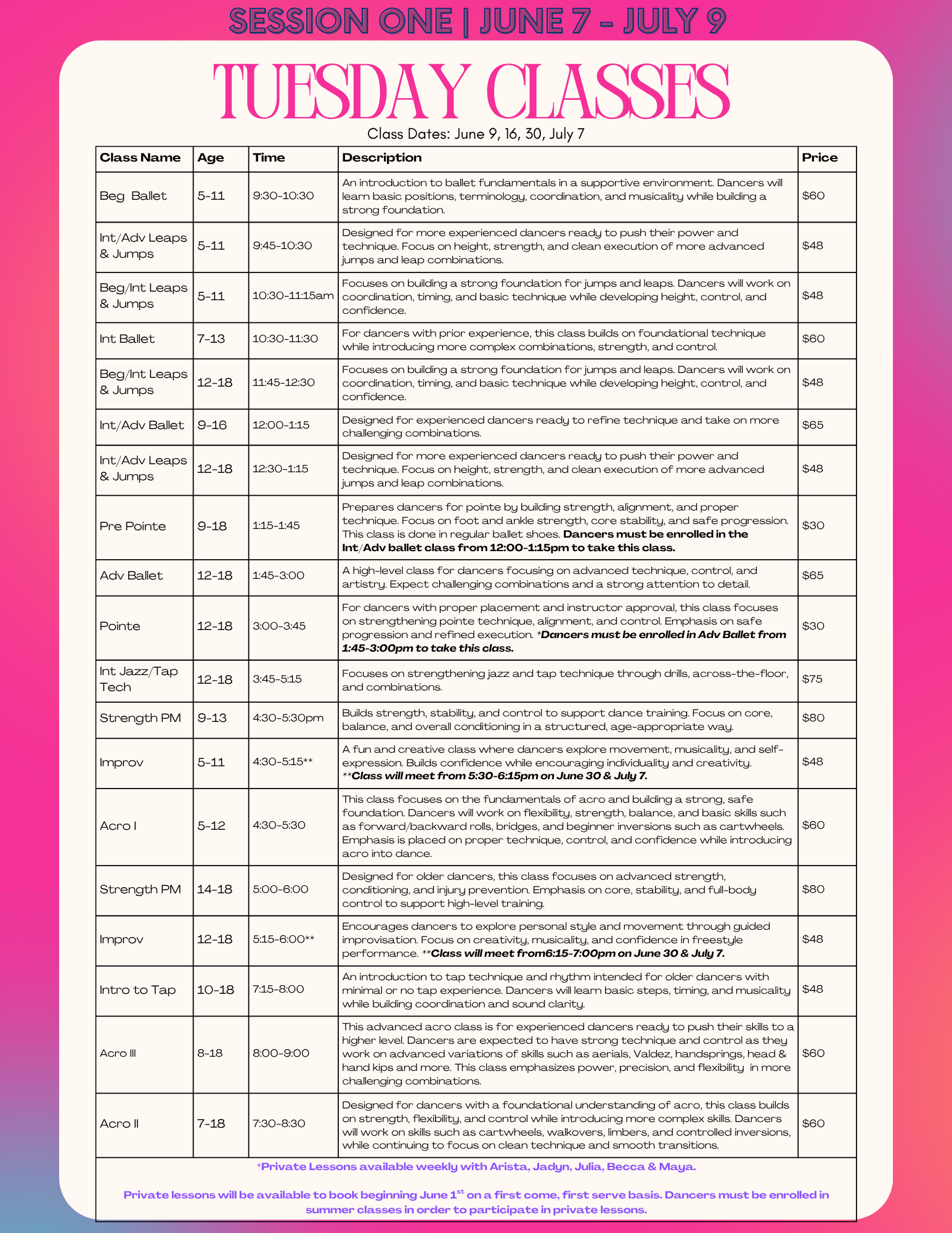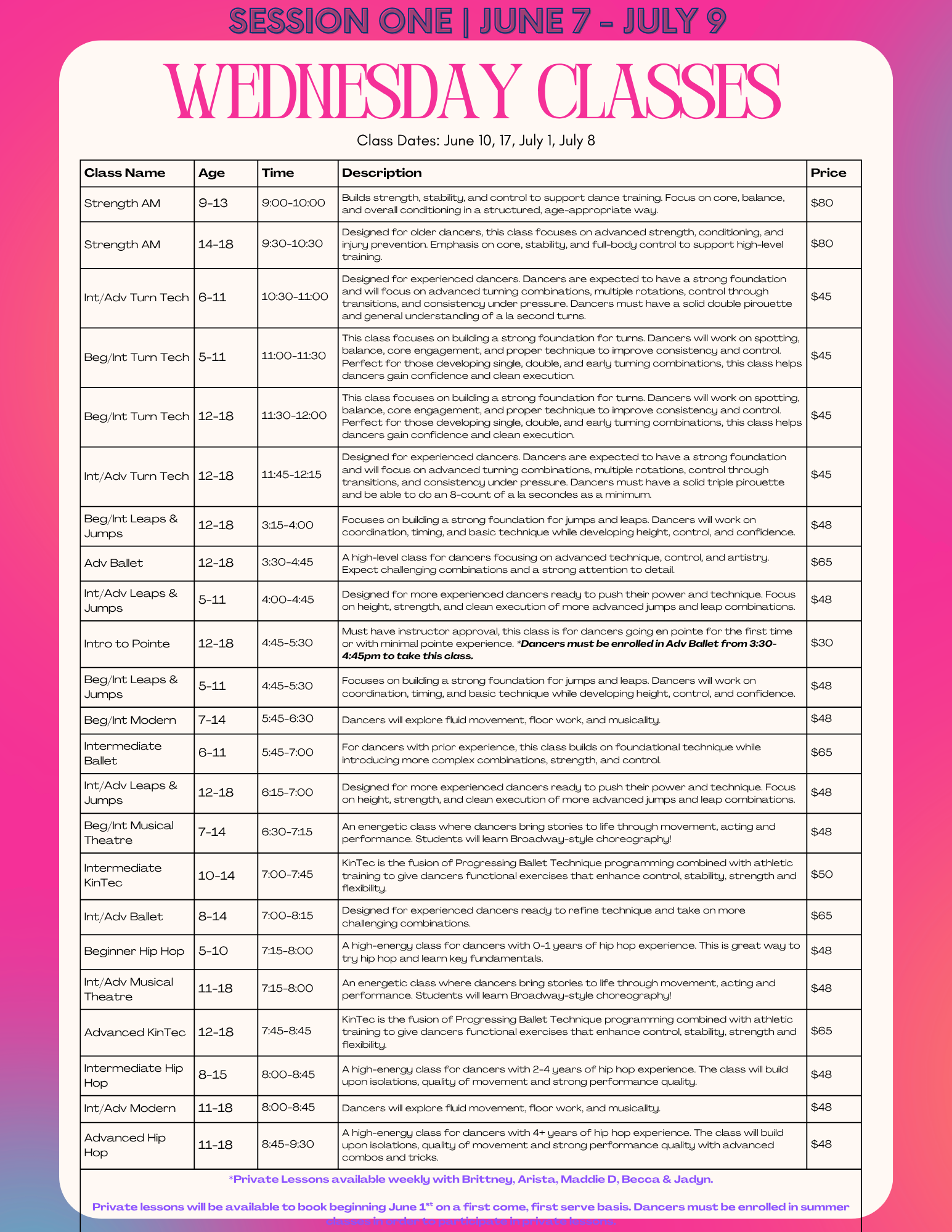 CLICK HERE TO VIEW OUR MUST UP TO DATE LIST OF SUMMER DANCE CLASSES.
